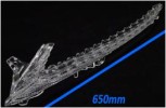 600mm×600mmの造形範囲を持つ大型の光造形機を4台保有。2000年の初期導入以来、CADデータから高速造形用データを作成するノウハウを蓄積し、最短時間での造形を実現しています。 同一材料を使用する光造形機を設備する協力企業との連携で、最大8台の同時稼働を実現。製品を構成する部品一式を一括で製作できることにより、お客様の試作目的にスピーディにお応えします。 170℃の耐熱仕様、アルミ蒸着や塗装を施し、見映え、組付け性の確認、配光試験などに活用いただいています。